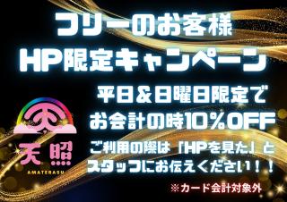 天照では、ホームページをご覧いただいたお客様限定のお得なキャンペーンをご用意しております。